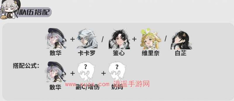 散华的定位是副c,配队时优先搭配另一个输出角色,然后再加个奶妈就行了。