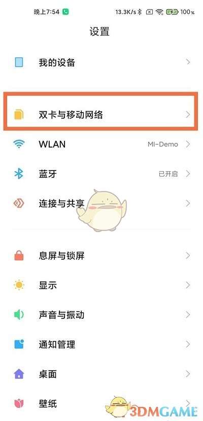 1、在手机的设置界面中,找到【双卡与移动网络】进入到其中;