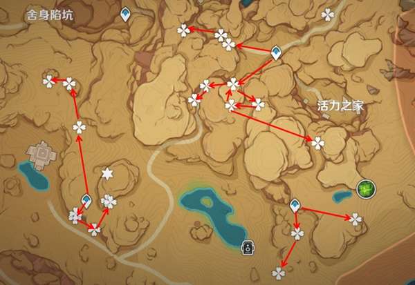 下面是采摘路线(共80个),大家如果有提纳里和纳西妲的话,我们可以带上提纳里和纳西妲,可以方便在地图上查找