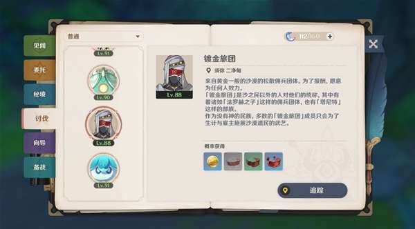 我们在地图上击杀镀金旅团时,掉落的材料,大家可以根据冒险手册 -- 讨伐 -- 普通 -- 镀金旅团种类,然后点击追踪,即可在地图上追踪 可能会追踪不全,我们每天走一遍,材料也可以够用