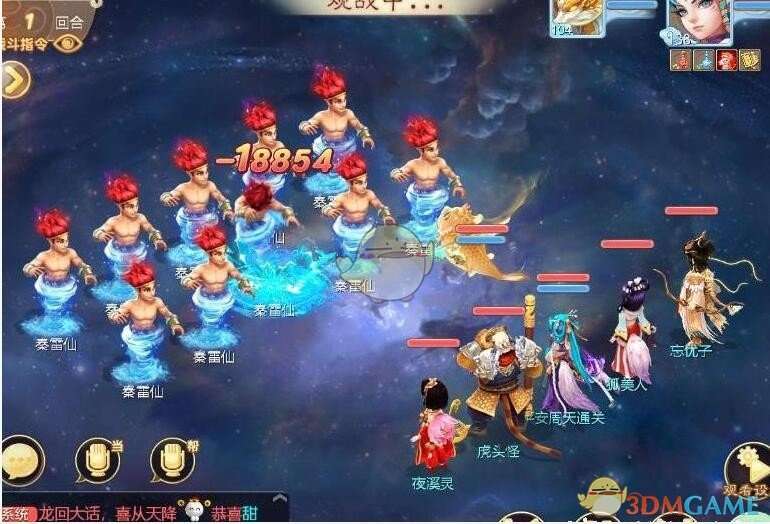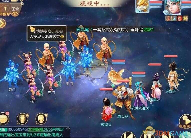 这关是找生门,第一回合看准生门的位置,然后会变身,生门死了就过了。如果是敏输出角色,直接带如图这类阵容,全部单法打生门,如果是男人,低敏种族的主角,第一回合就叫个隐身宝宝,男龙挂治愈,其他单法,分2回合打死生门就行了。