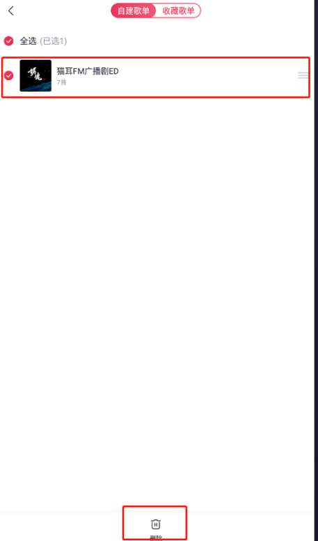第四步:打开如下图界面,勾选需要删除的歌单名称,然后点击下方的删除按钮。