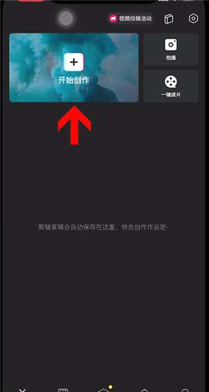 1、首先打开剪映app,点击首页开始创作选项,