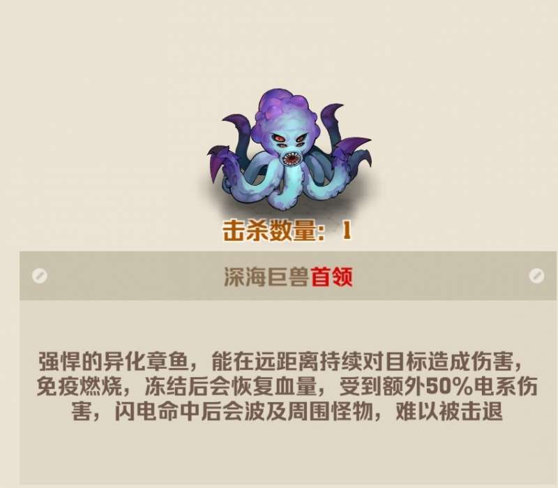 20关BOSS是大章鱼,他的特性是被冰冻结后回血,所以打20关不要拿冰雹核冰属性技能打