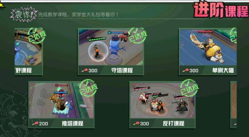 开局先去找敌方的射手,近身进行击杀,接着就会有另外两个英雄前来。玩家按照顺序依次秒掉脆皮,再解决另外一个坦克就行了。最后一个课程最简单,玩家根据提示来做就行了。可以先购买打野小刀,去左上角清理掉青蛙,再去击杀敌方的英雄,最后跟着兵线去将水晶推掉就可以了。
