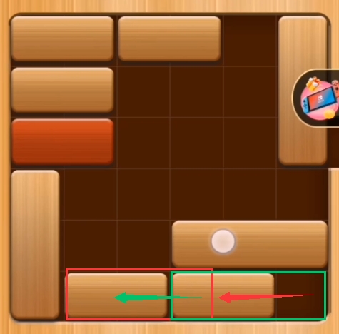 第一步:将最后一排的两个横向的积木均往左边推(如图:)