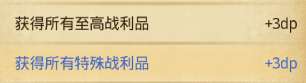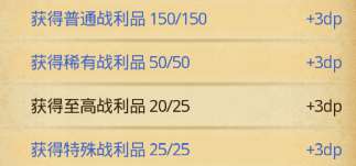 普通和稀有战利品主要就是刷怪和开箱子出至高战利品一局16个特殊战利品一局最多19个前边的2个dp是累计完成