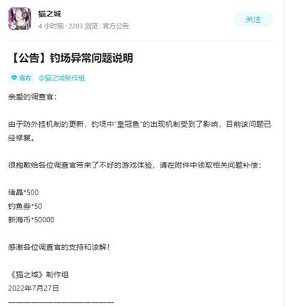 3、不过最近的7月27日的公告中声明已经修复该问题,还发了异常补贴。