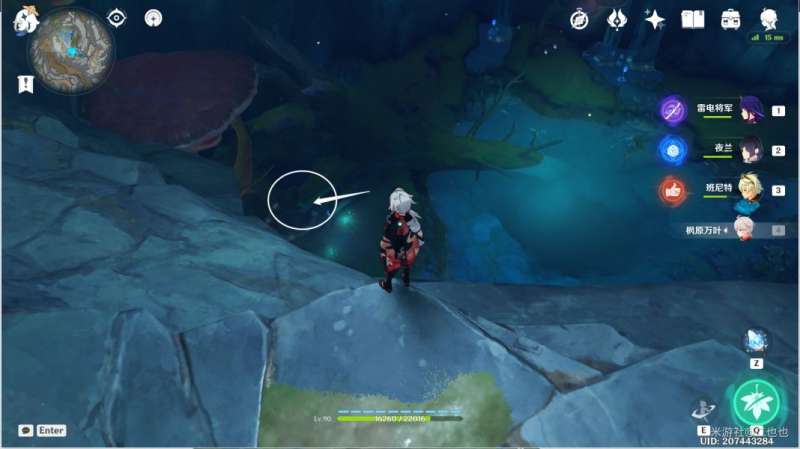 按地图指引走到悬崖边后,往左下方的树根飞