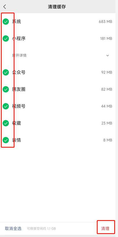 3、最后在这用户们就能自定义选择想要清理的项目,点击清理就可以啦~