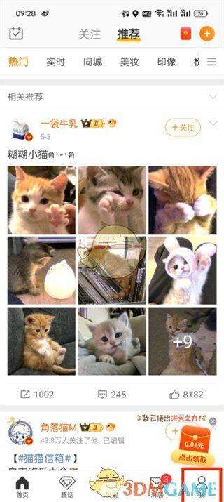 1、首先打开微博软件,进入到首页中可以切换到超话、发现、消息、我页面,在这里我们点击右下角的【我】;