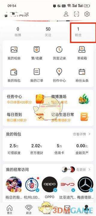 2、然后在我的页面中我们可以查看很多的信息,我们需要点击的是【粉丝】按钮;
