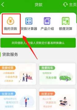 2、点击【贷款】,进入贷款界面,找到【我的贷款】。
