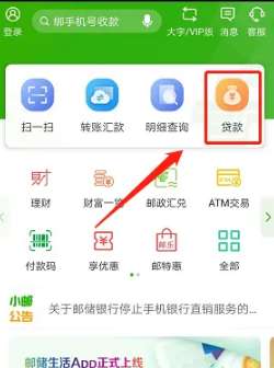 1、进入邮储银行手机银行APP,在主页找到【贷款】功能。