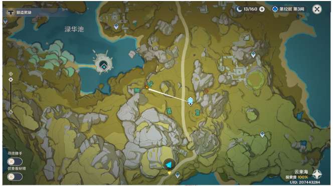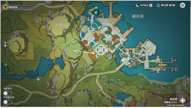 13、传送璃月港上方神像,往地图的西南方向走。