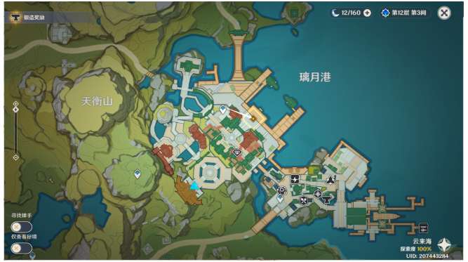 3、传送璃月港上方锚点,往地图的西南方向飞。