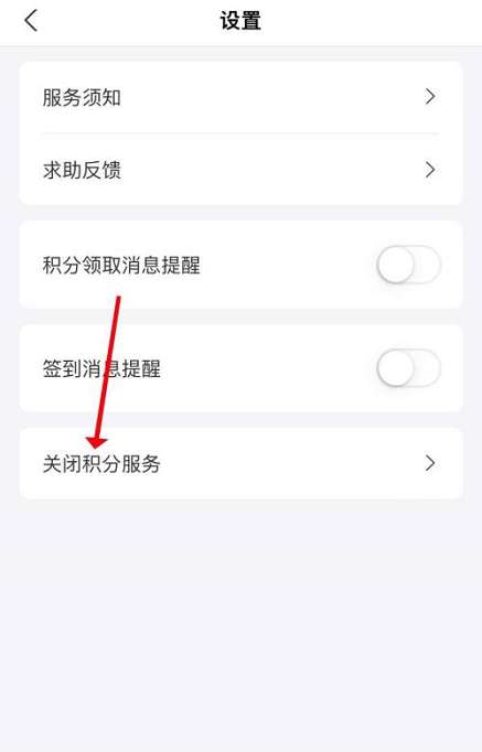 第四步:在设置中心页面,点击关闭积分服务进入。
