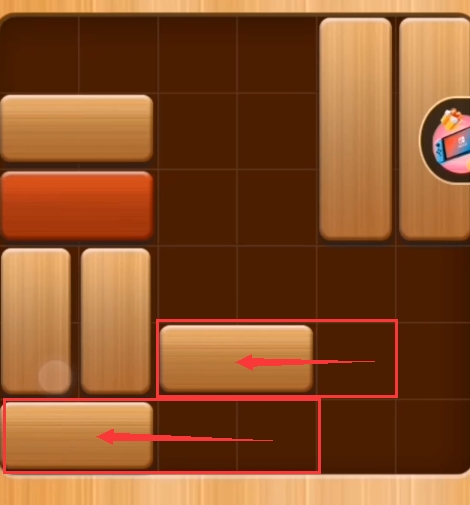 第一步:将第五排、第六排的横向的积木均往左边推(如图:)