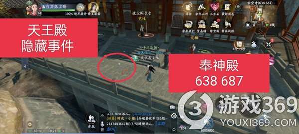 天王殿的隐藏事件位置在玄空寺奉神殿(638,687),玩家们可以参考图片上给出的位置来找到正确地点。