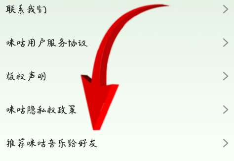 打开关于米古音乐之后,我们可以看见最下面一个选项是推荐咪咕音乐给好友,这样我们就可以找到我们的通讯录好啦。