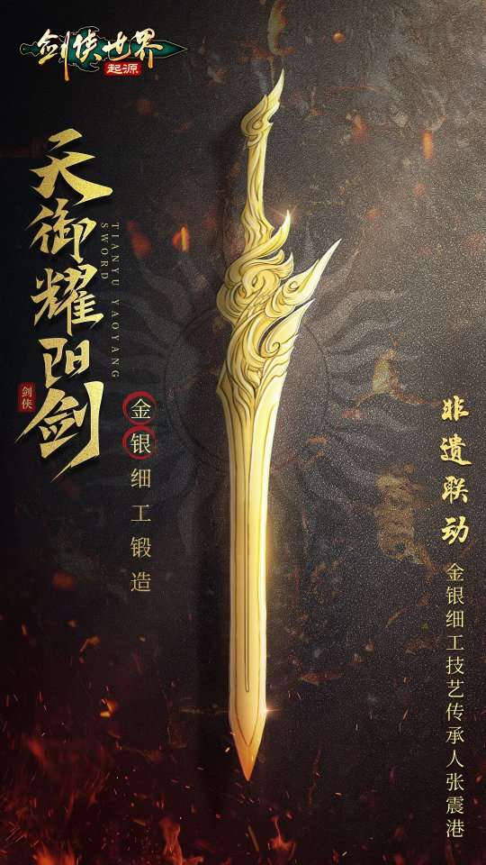 感悟非遗之美,传承文化之魂!张卫健倾情代言、西山居剑侠情缘26年传承之作《剑侠世界:起源》手游携手金银细工技艺大师张震港,用精心打造的金银宝剑为首届武林大会赛事冠军加冕!