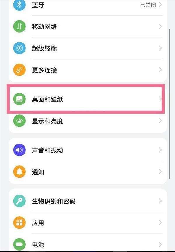1、在手机设置菜单中选择【桌面和壁纸】。