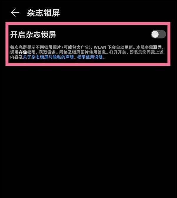 3、开启或关闭【开启杂志锁屏】右侧的开关就可以了。