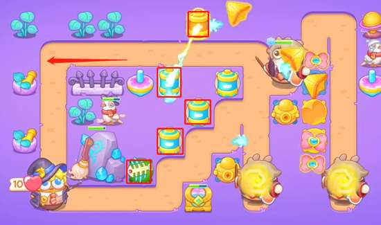 3、清理出位置之后我们增加炮台的数量强化伤害能力,尽快拿到全清继续清理剩下的道具。