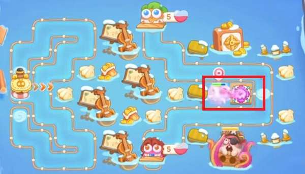 1、用电磁炮开局,先清理左边的道具,兔子没来打下面的章鱼。