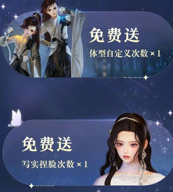 免费送体型自定义次数、写意捏脸次数、写实捏脸次数,捏脸 / 捏体型全场半价连开 46 天。