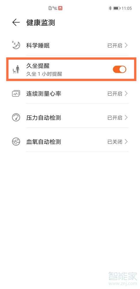 2、将【久坐提醒】右侧的按钮开关打开即可。