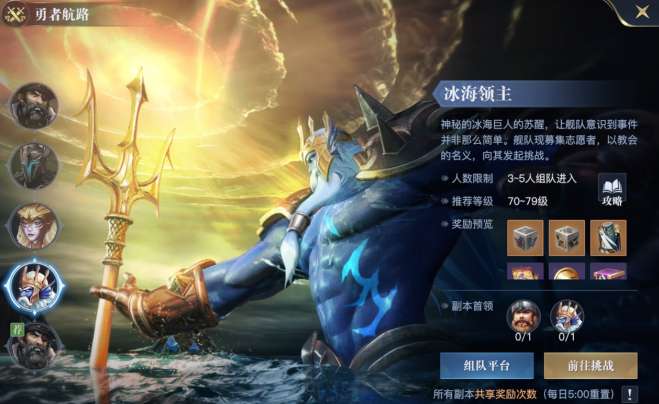 1、推荐满5人。挑战勇者航路的副本首领需要玩家们团队协作,最少需要三位冒险家组队可进入副本地图挑战,推荐大家组满五人再挑战。