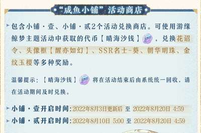 2、玩家可以使用清海沙钱在咸鱼小铺活动商店中兑换奖励。