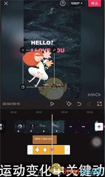 5、这样画面会从第一个关键帧处到第二个关键帧匀速变化,可以继续添加关键帧, 剪辑好了点击“导出”即可。