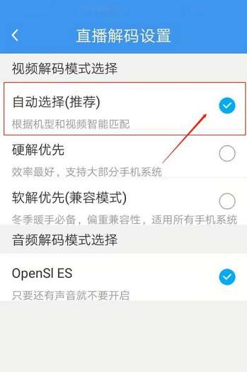 第四步:进入直播解码设置页面,点击勾选自动选择即可。