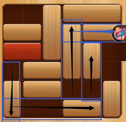 第三步:第四排的往左边推、第五排的往右边推、第三列的往下推、第一排往左边推: