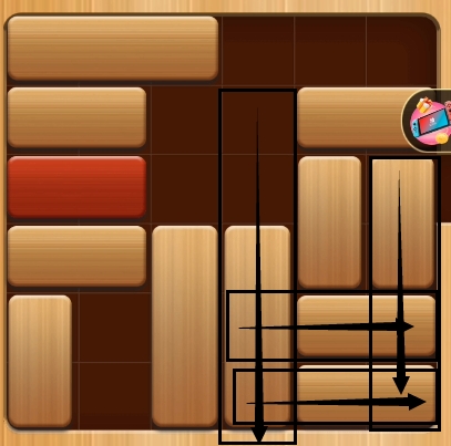 第二步:第二排的往右边推、第四、五列的往上推、最后一排的往右边推、第一列的往下推: