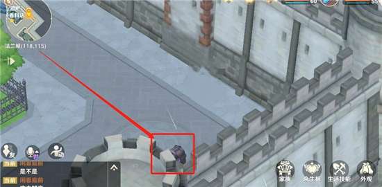 注意:被城墙挡住了,需要切换角度才能看见。