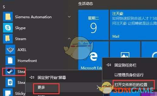 1、首先右击你的steam客户端-更多,选择打开文件所在位置。