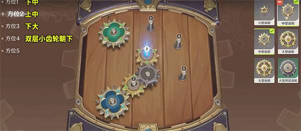 1:首先我们打开游戏,然后进入对应的活动页面中,首先我们在方位1放置一个中型的齿轮;