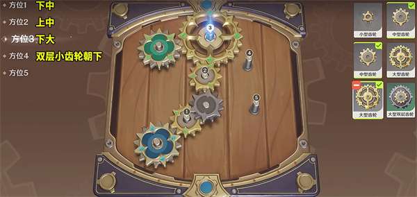3:然后我们在方位3选择一个大型齿轮,最后就是方位4,放置一个大型的双层齿轮即可;