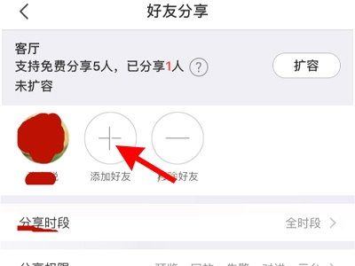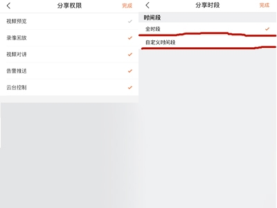 3、点击分享时段和分享权限,设置需要的分享时段和分享权限即可。