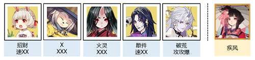 备注:鬼使黑只要50暴击,妖刀姬锁3技能,铁鼠/丑女/千姬/缘结神/不知火/驴妈在满足配速的基础上无御魂要求。