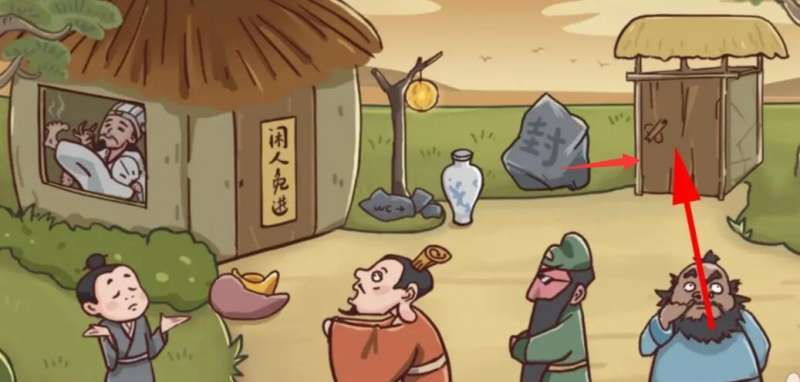 3、拖拽写有封字的大石头,挡在茅房的门口。