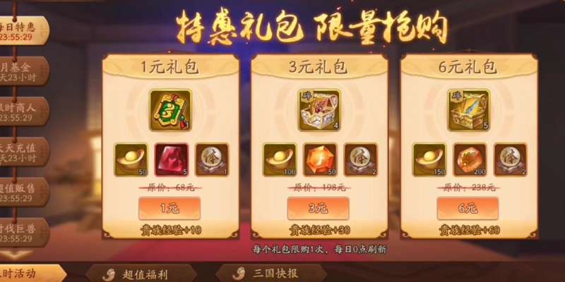 少年三国志2的官方会定期举办各种活动,参与这些活动往往是获取赤金礼包最直接的途径。游戏内的节日活动、登录奖励、挑战赛事等,玩家只需关注游戏公告并参与就有机会获得赤金礼包。