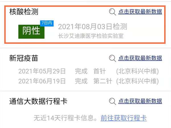 3、就可以在健康码下面查看核酸结果。
