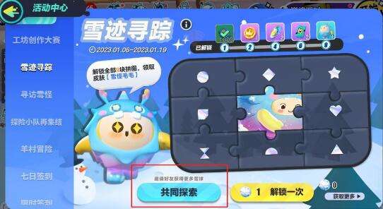 2、我们要想获得更多的雪球就需要让大家为我们助力,点击下方左侧按钮“共同探索”即可。