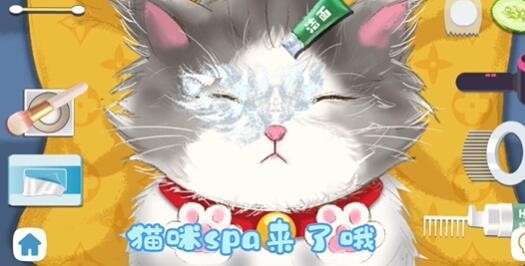 2、第二步:然后在左边道具第二个,我们用洁面乳给猫猫涂上。