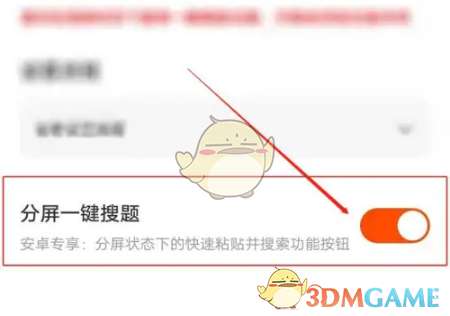 3、进入快捷搜题设置页面,点开分屏一键搜题按钮。