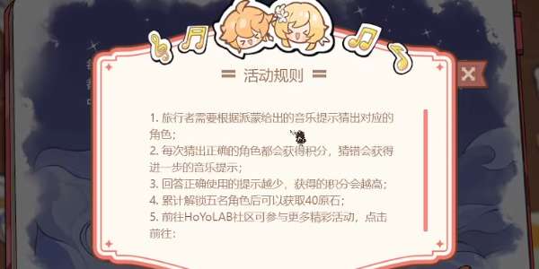 1.旅行者需要根据派蒙给出的音乐提示猜出对应的角色;